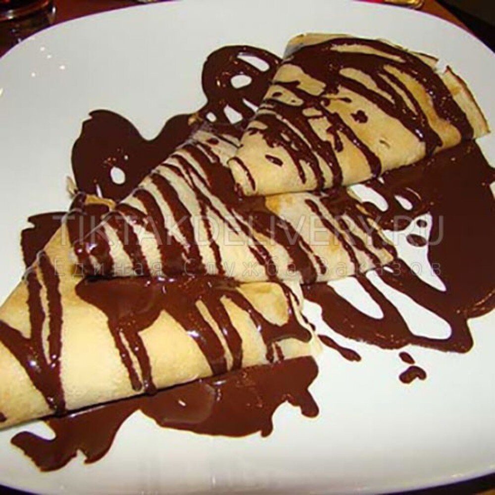 Блинчики мучные,масло сливочное,топинг шоколадный