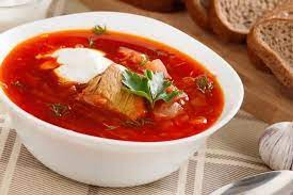 Борщ украинский с мясом со сметаной