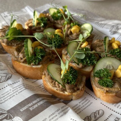 Канапе с паштетом из куриной печени на гренке из пшеничного багета